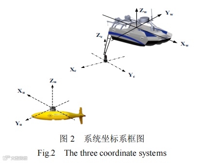 USV、UUV 协同作业的关键技术之一是协同导航。USV 可以较为容易获得高精度惯导信息或 GNSS信息从而得到精确的导航信息,但 UUV 受体积、重量、能源的限制,自身所装备的导航设备精度一般不高,也无法利用 GNSS 信息,难以满足长时间高精度导航作业的要求。而声波在水下传播相比无线电、微波等信号衰减小,传播距离更远,因此广泛用来水下通信和定位。超短基线(Ultra Short Base Line, USBL)具有尺寸小、安装方便等特点,适合用于水下运动载体间的通信和定位[1]。