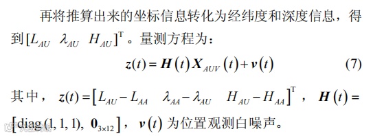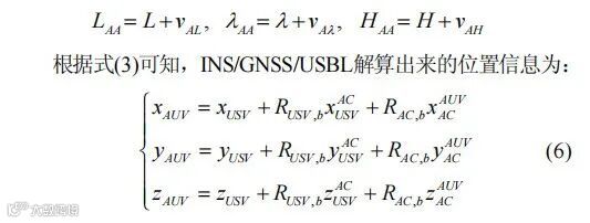 然后选择UUV惯导解算出来的经纬度位置信息与USV的INS/GNSS/USBL解算出来的对应信息的差值作为量测量,建立量测方程。