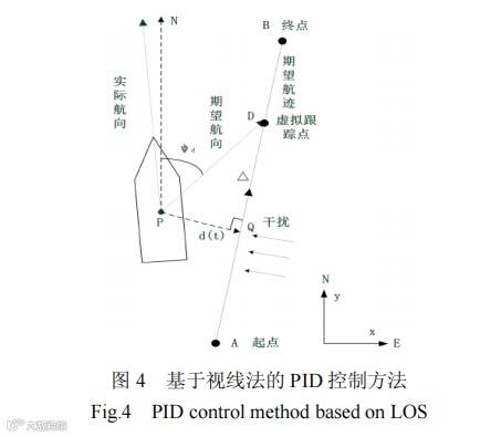 UUV 和 USV 之间的相对距离可以由由pAC获得,为了能够保持稳定的相对距离 d,因 USV 机动性更好,采用调整 USV 运动航向和航速的方法,本文采用基于视线法的线性 PID 方法,如图 4 所示。