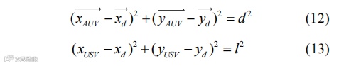 从式(8)可以得到,USV 与 UUV 的有效空间关系: