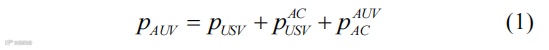 通过 GNSS 或其组合导航后获得的 USV 的位置pGUSV,UUV 在当地坐标中的位置可以表示为