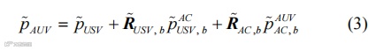 其中,pUSV是 USV 在当地坐标系中的位置,可由 pGUSV计算得到;pACUSV是固定在 USV 上的问答器相对于 USV在当地坐标系中的位置;pACUSV是固定在 UUV 上的应答器相对于问答器的位置。在本文中,由于 UUV 与应答器是固连安装,因此将 UUV 和应答器视为一个整体。