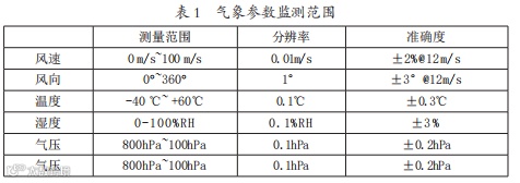 船舶气象采集仪是气象监测子系统主要组成,是一种用于风速、风向、气温、相对湿度、海平面气压等海洋气象参数自动观测的智能仪器,具体参数监测范围见表 1。