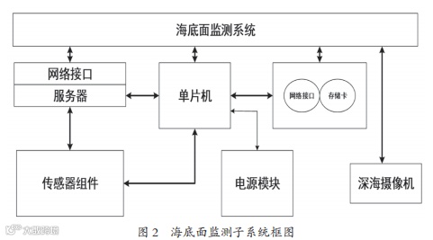 海底面监测子系统组成如图 2 所示,主要使用坐底式观测平台用于采集海底数据,包括海水溶解甲烷、二氧化碳、温度、盐度、压力、溶解氧、pH 值、浊度、叶绿素、多普勒声学海流、多普勒声学剖面海流等,以用于风险现象预防。