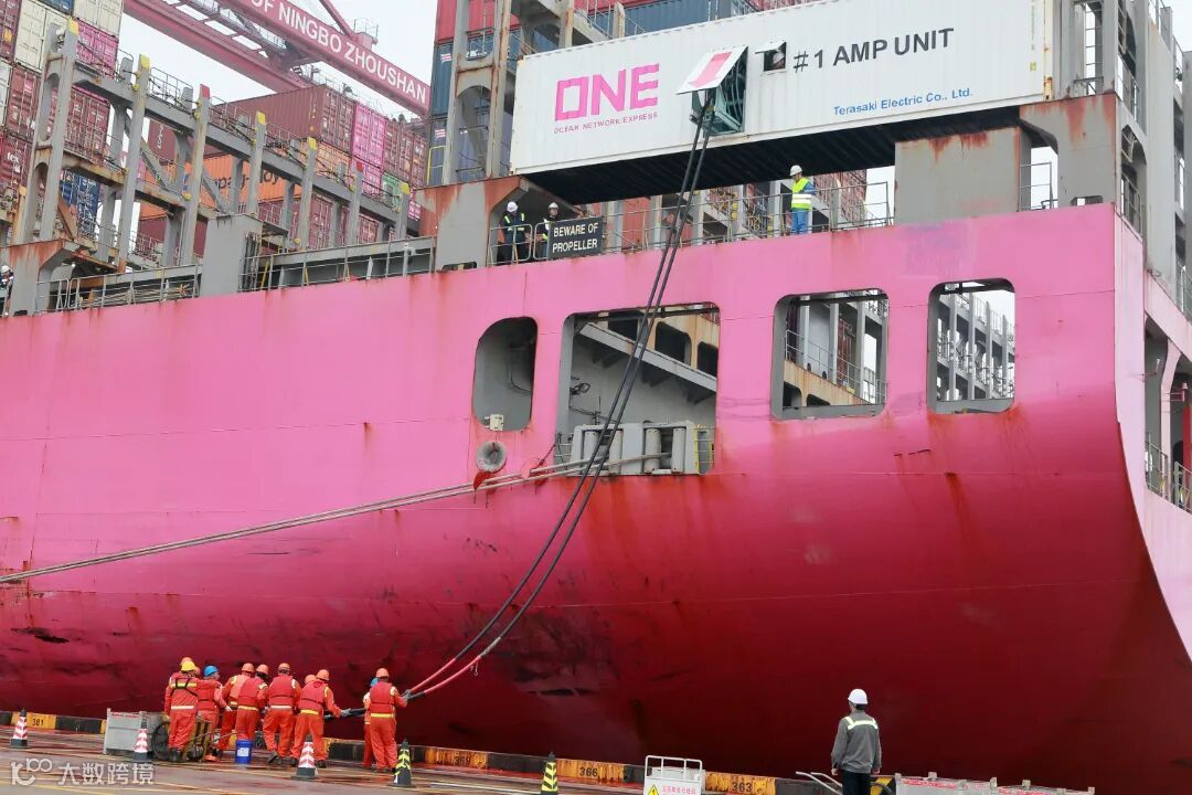 “合闸,通电!”12月6日15时许,随着一声指令,靠泊在北二集司2号泊位的“第一使命”轮,成功通过“海洋网联-宁波舟山港新型移动式岸电箱”接通岸电,标志着全国首个船岸协同开展移动式岸电箱接电模式正式落地。