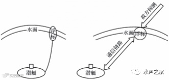 与上述两种对潜通信技术相比较,浮标对潜通信技术是一种最为成熟完善的新型对潜通信方式,该通信技术应用原理是通过利用通信浮标作为潜艇对潜通信的中转站,实现潜艇在深水下就能够完成与岸舰的联络通信。浮标对潜通信技术在潜艇通信工作中所采用的浮标主要包括多功能抛弃式浮标、拖曳浮标等[4]。