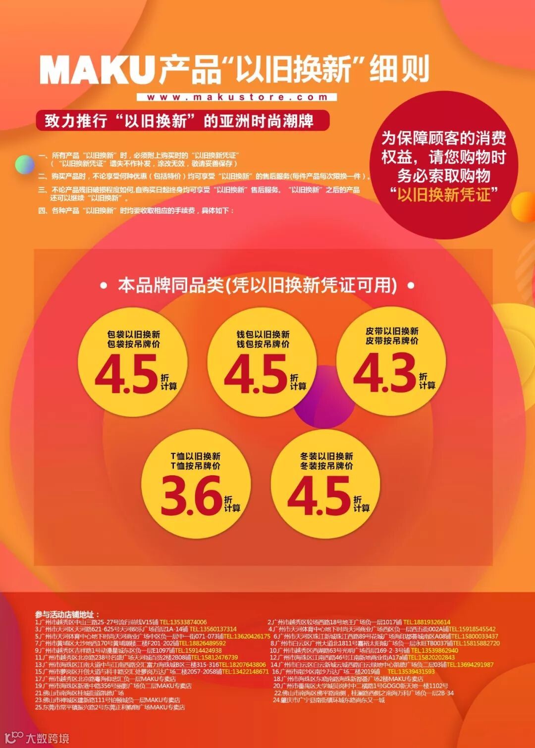 注:“以旧换新”不与店内其他优惠同享卡包,零钱包,钥匙包,保温袋,环保袋不参与喔~