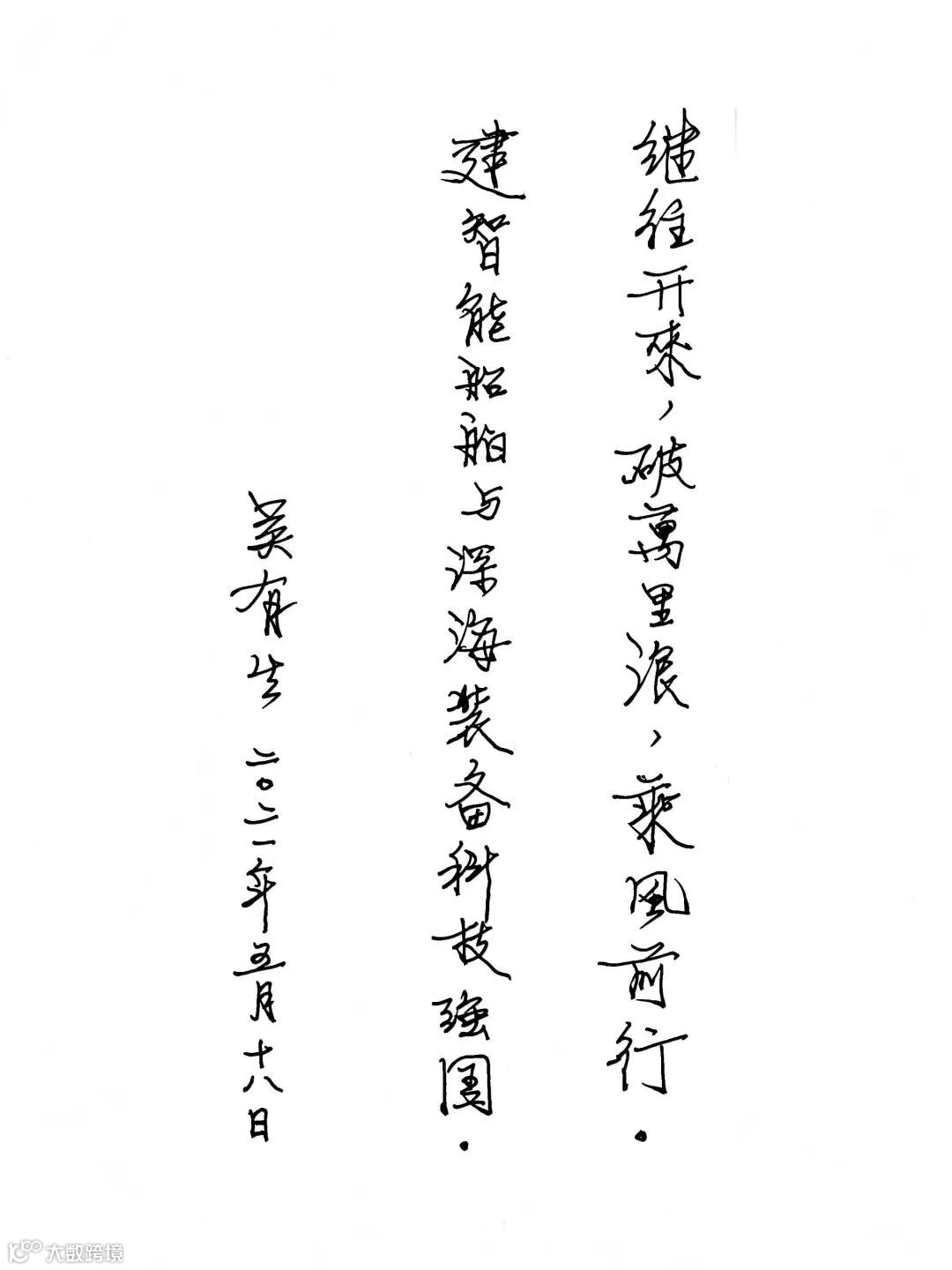 “我们要建设成为海洋强国,在科学的道路上还有很多很多的事情要做。”尽管硕果累累,但他始终认为自己做得还不够。为了国家的强盛,年过古稀的他不知疲惫地在科学的征途上驰骋。他就是中国工程院院士、中国船舶集团有限公司第七〇二研究所名誉所长吴有生。