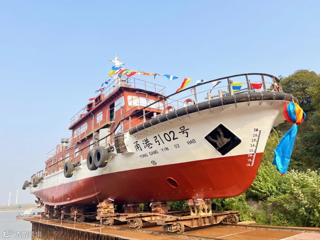 “甬港引02号”为全钢制结构,总长约40米,型宽7.4米,型深3.4米,具备绿色节能、安全高效的特点,于今年4月正式开工。