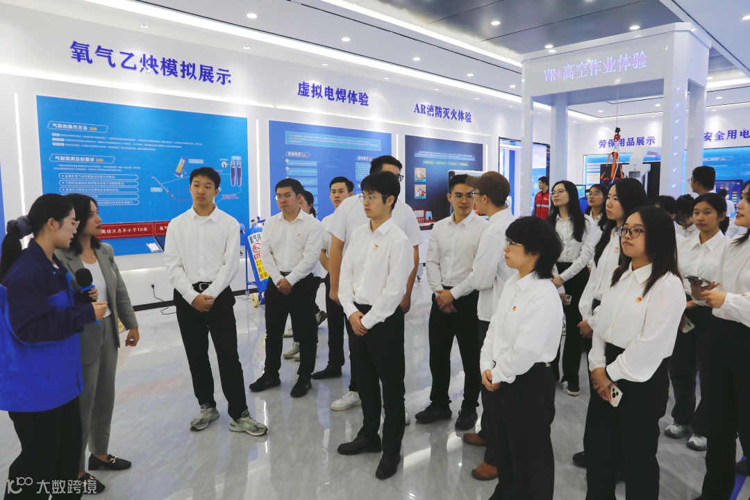 授课前,青年们走进梅山港口基础设施重点项目部综合展示体验馆,参观党建文化、项目展示等内容模块,深度体验全过程安全培训,在认知、体验、实操、培训等主题区域,通过VR、视频等形式直观接触现场安全管理,沉浸式学习安全专业知识,进一步提升安全防范意识。