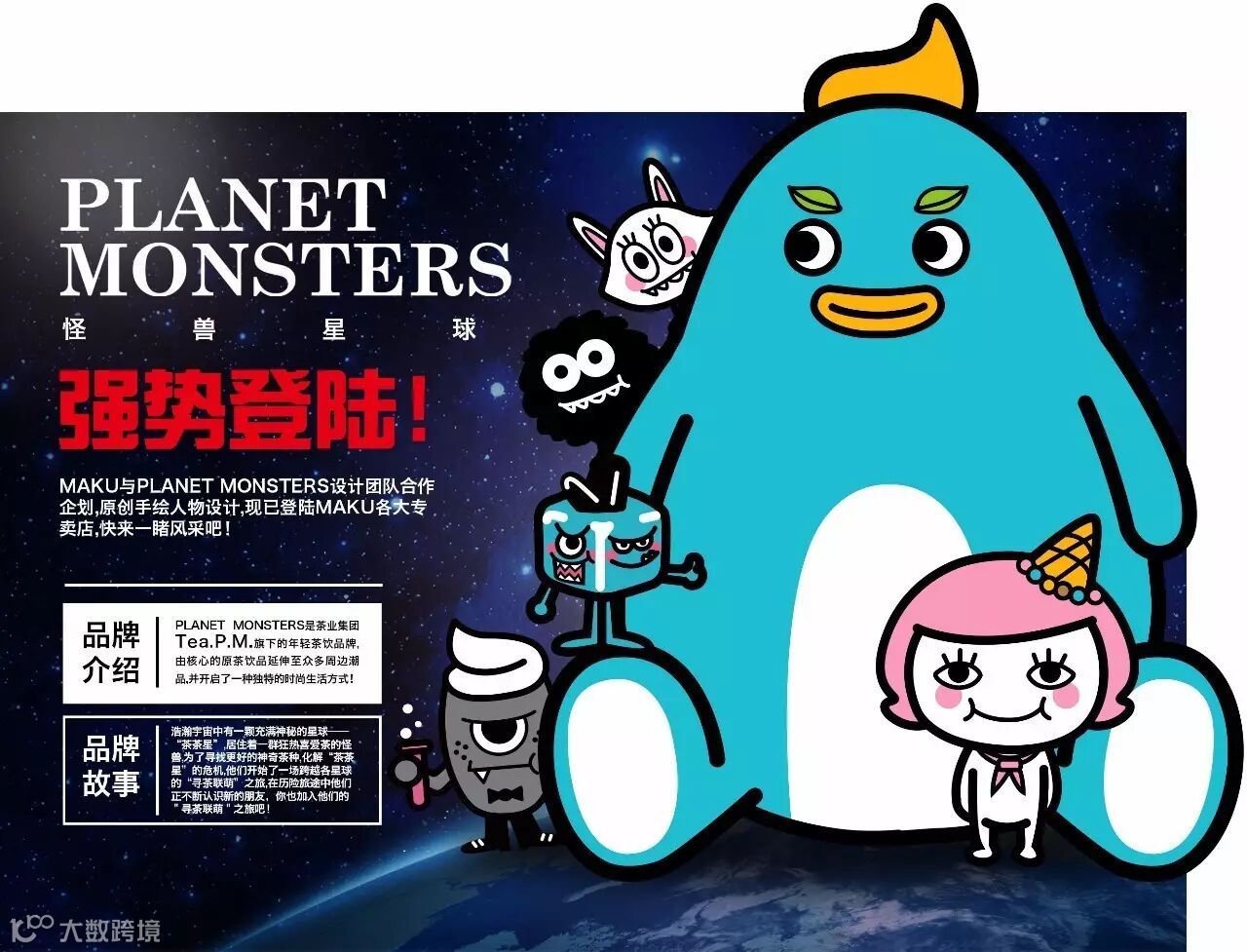 Planet Monsters是茶业集团TeaP.M.旗下的年轻茶饮品牌,由核心的原茶饮品延伸至众多周边潮品,并开启了一种独特的时尚生活方式!