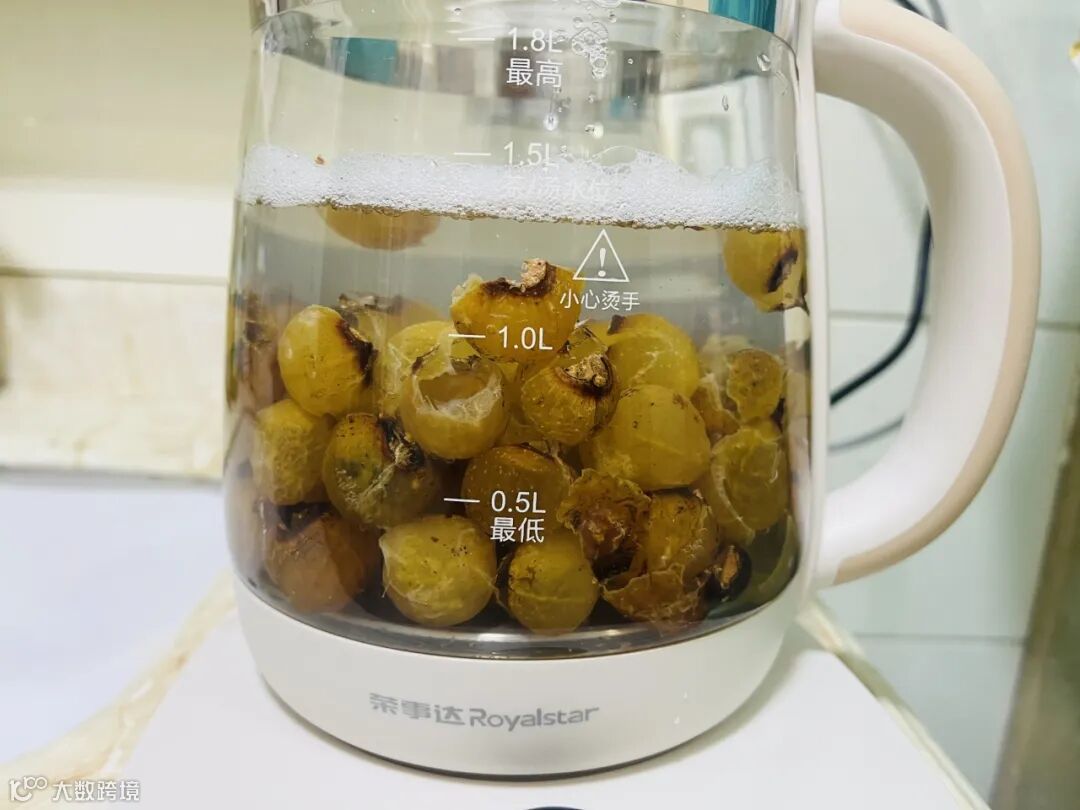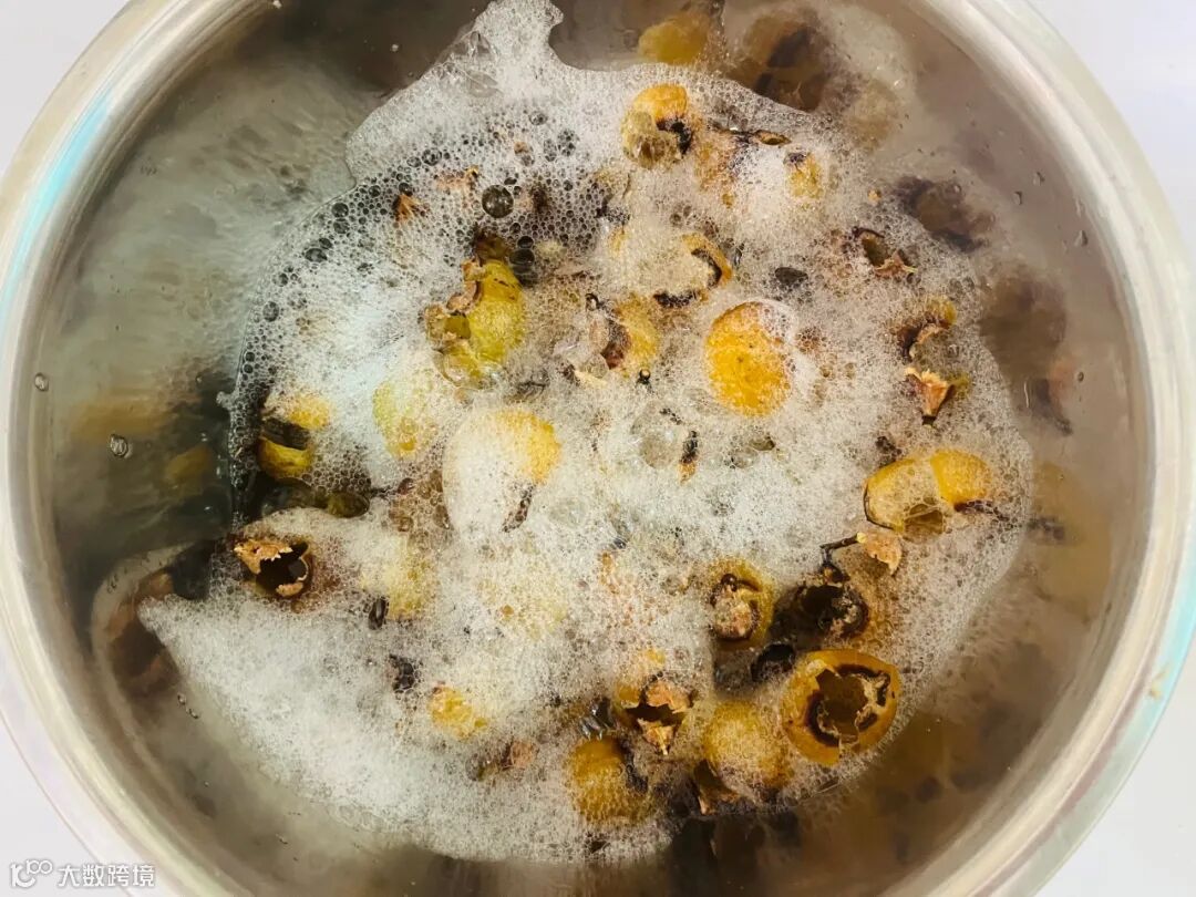 将去核后的无患子洗净,入锅熬煮,水开后转至小火,再煮30分钟。(您能闻到类似菠萝的幽幽香气)