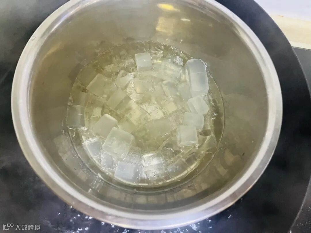 隔水加热融化皂基后,再将皂基液与无患子液按5:1混合均匀。