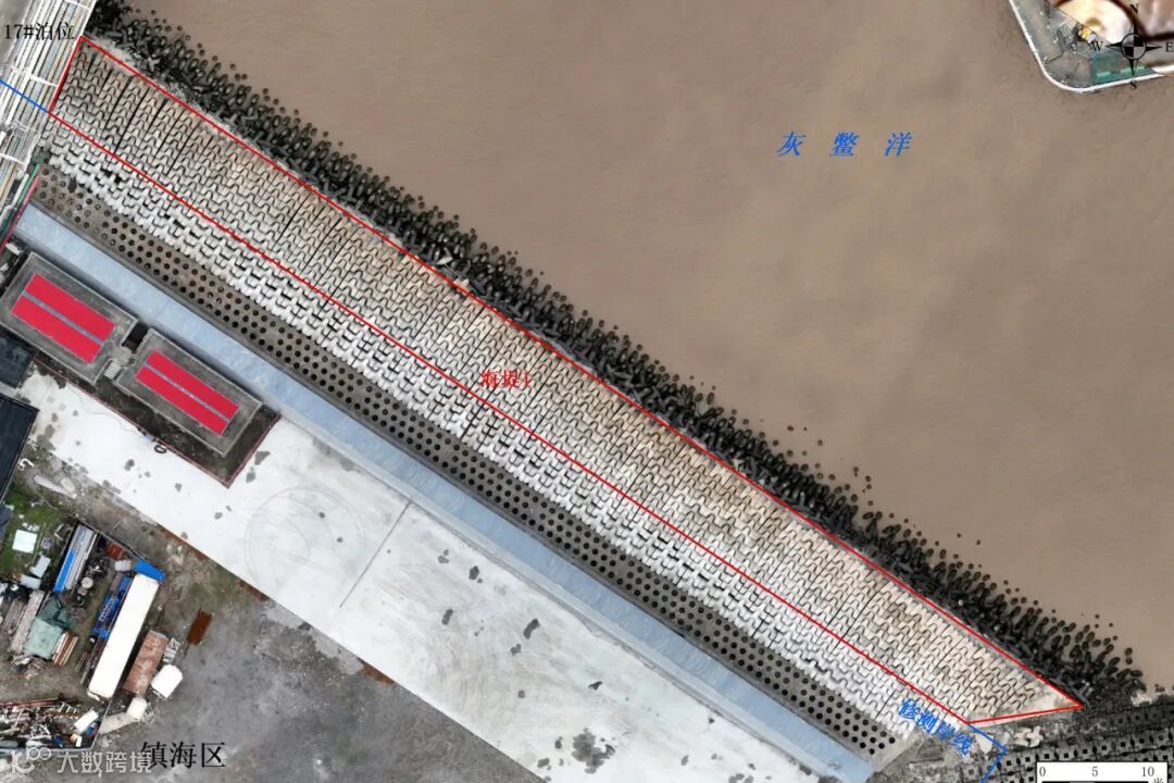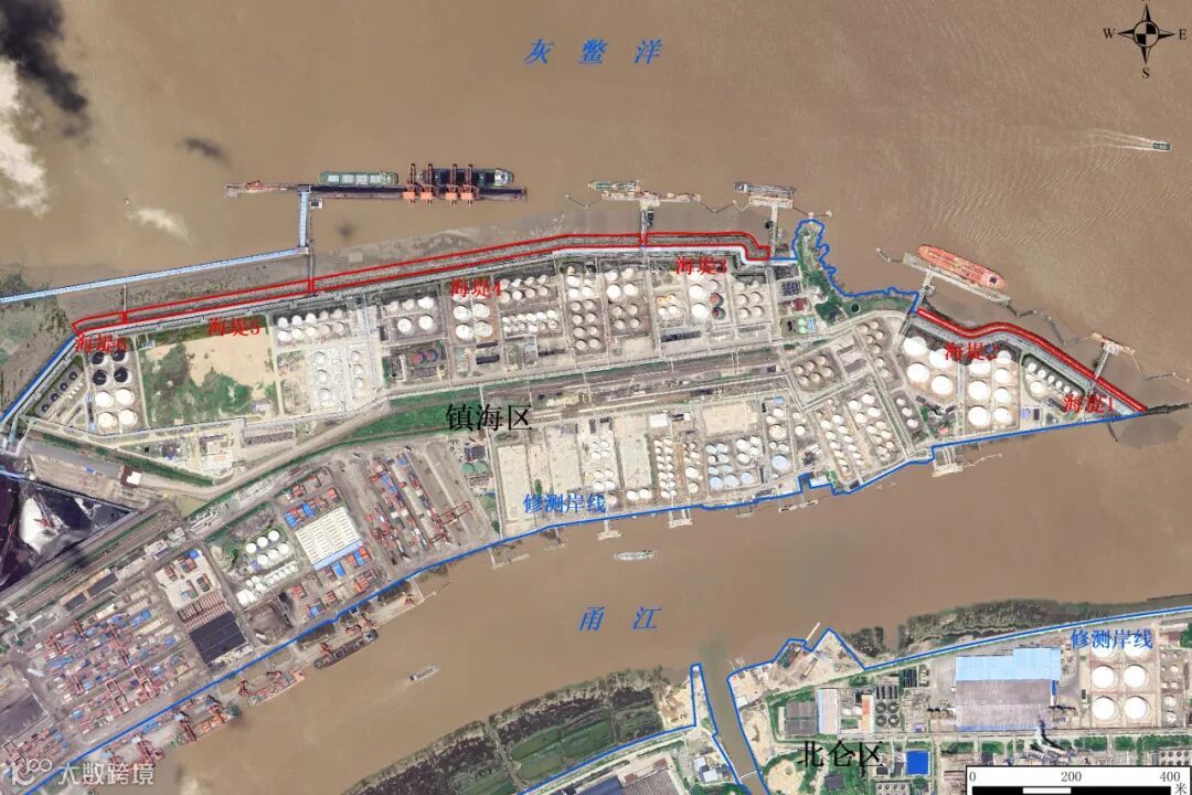 为海塘提标加固的镇海港区海塘安澜工程于2023年9月8日开工,实际总投资8168万元,主要建设内容是加固5万吨级化工泊位防浪堤和围海造地工程围堤。堤线东起甬江出海口,西至镇海电厂三号灰库堤,海堤中间被游山一分为二,两段海堤分别长520米和1740米,构筑起一道堤总长2260米的海塘壁垒。