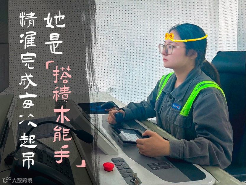 在机上打下扎实的操作功底后,张琪从20余米高的司机室移步远控操作室。作为“00后”,她乐于拥抱新趋势。如今,坐在舒适的远控室内,她只需轻摇手柄,就能精准地指挥远处的龙门吊完成各种复杂的作业任务。工作环境的改善让她能够更加专注于工作本身,而工作效率的显著提升则让她成为了团队中的佼佼者。这位“00”后龙门吊女司机将自己的工作比作“搭积木”:“要让‘积木’搭得稳、搭得牢,需要坚守安全作业准则,不断追求工作质量,精益求精完成每次起吊!”