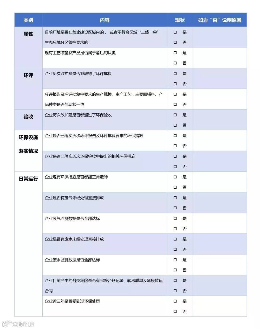 表一:排污许可证申领自查表