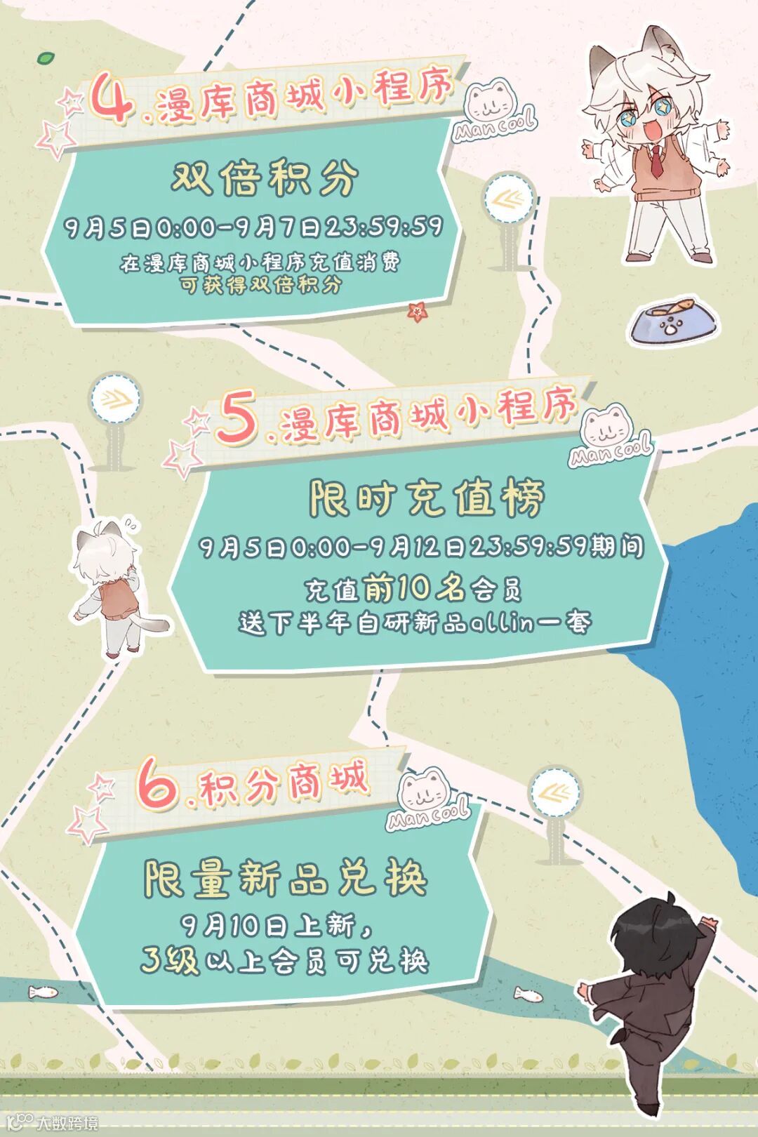 9月5日0:00-9月7日23:59:59,漫库商城充值消费双倍积分~