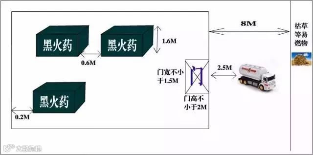 16.2.4 各种民用爆炸物品整箱堆放高度,工业雷管、黑火药不应超过1.6m,炸药、索类不应超过1.8m,宜在墙面画定高线。