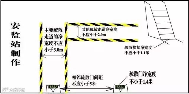 除本规范另有规定外,公共建筑内疏散门和安全出口的净宽度不应小于0.9米,疏散走道和疏散楼梯的净宽度不应小于1.1米。《建筑设计防火规范》(GB50016-2014)5.5.18