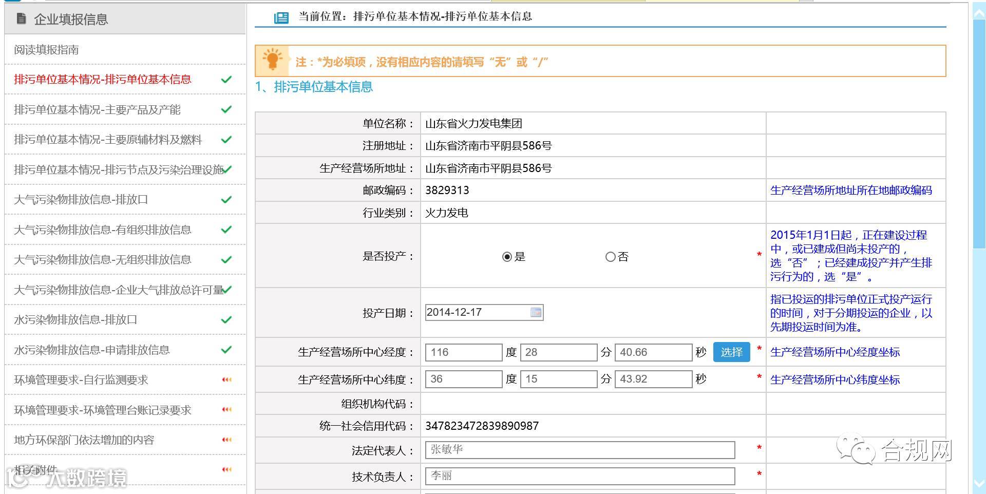 ► 申请填报包括14个页面的内容,分别为:排污单位基本情况;排污单位基本情况-主要产品及产能;排污单位基本情况-主要燃料及原辅材料;排污单位基本情况-排污节点、污染物及污染治理设施;大气污染物排放信息-排放口;大气污染物排放信息-有组织排放信息;大气污染物排放信息-无组织排放信息;大气污染物排放信息-企业大气排放总许可量;水污染物排放信息-排放口;水污染物排放信息-申请排放信息;环境管理要求-自行监测要求;环境管理要求-环境管理台账记录要求;地方环保部门依法增加的内容;相关附件。