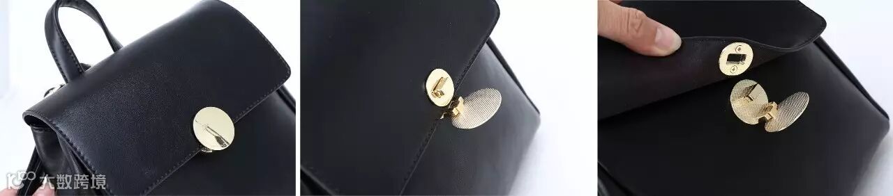 几何圆形金色锁扣,耀眼活泼,给人一种闪闪惹人爱的即视感,个性开锁方式,吸引人去打开,安全防盗更贴心