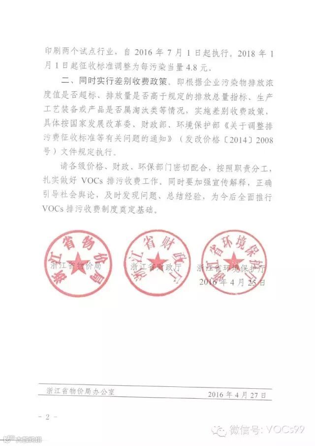 关于制定石油化工和包装印刷行业挥发性有机物排污费征收标准的通知 (浙价资[2016]73号)