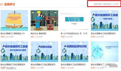 在线学习这个板块,无论是个人还是企业都可以使用,如下图,可以按照需求在板块右上角处选择最新课程、精品课程和公开课,课件主要是行业相关的文档、动画视频(我自己比较喜欢动画,既可以放松心情,还能学习),其中也有针对企业开发的课件。观看课件需要一定的积分,自己也可以上传课件赚取积分。