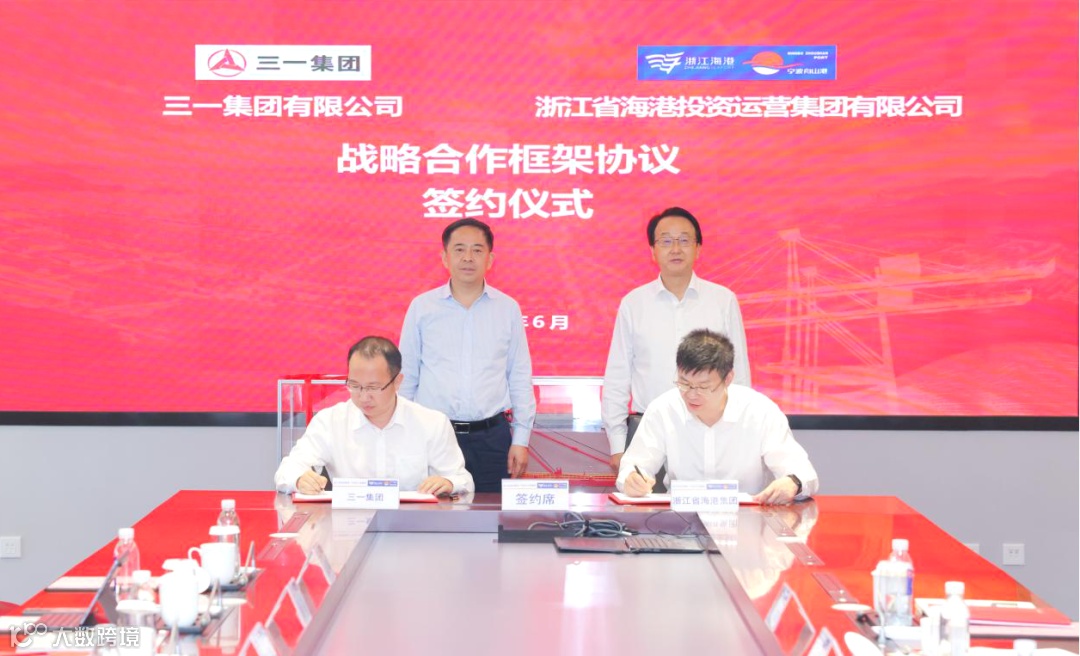 6月13日下午,三一集团党委书记、董事长,三一重工董事长向文波一行到访浙江省海港集团、宁波舟山港集团。集团党委书记、董事长,股份公司董事长陶成波与向文波进行了座谈,并共同见证双方签署战略合作框架协议。