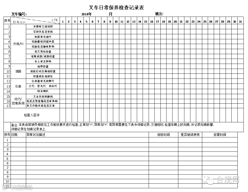 在小编的公司,一台完全符合要求的,可以投入使用的叉车需要满足: