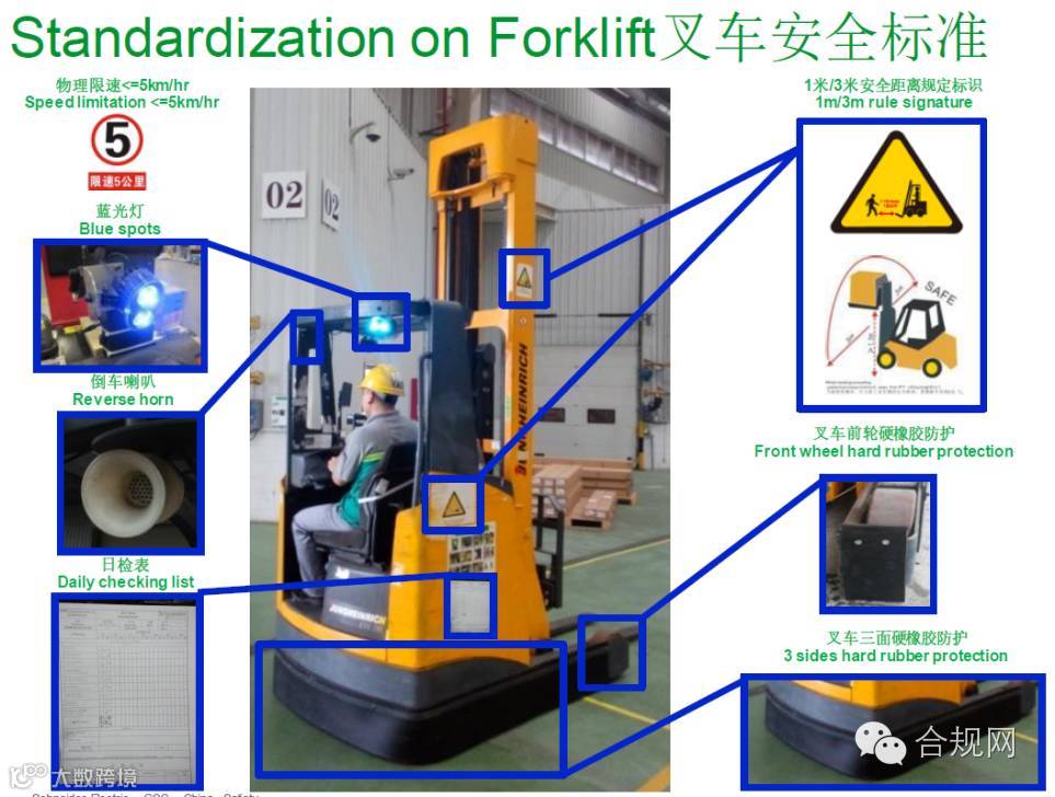 - 1米和3米安全距离要求的标识需要张贴在叉车的侧面