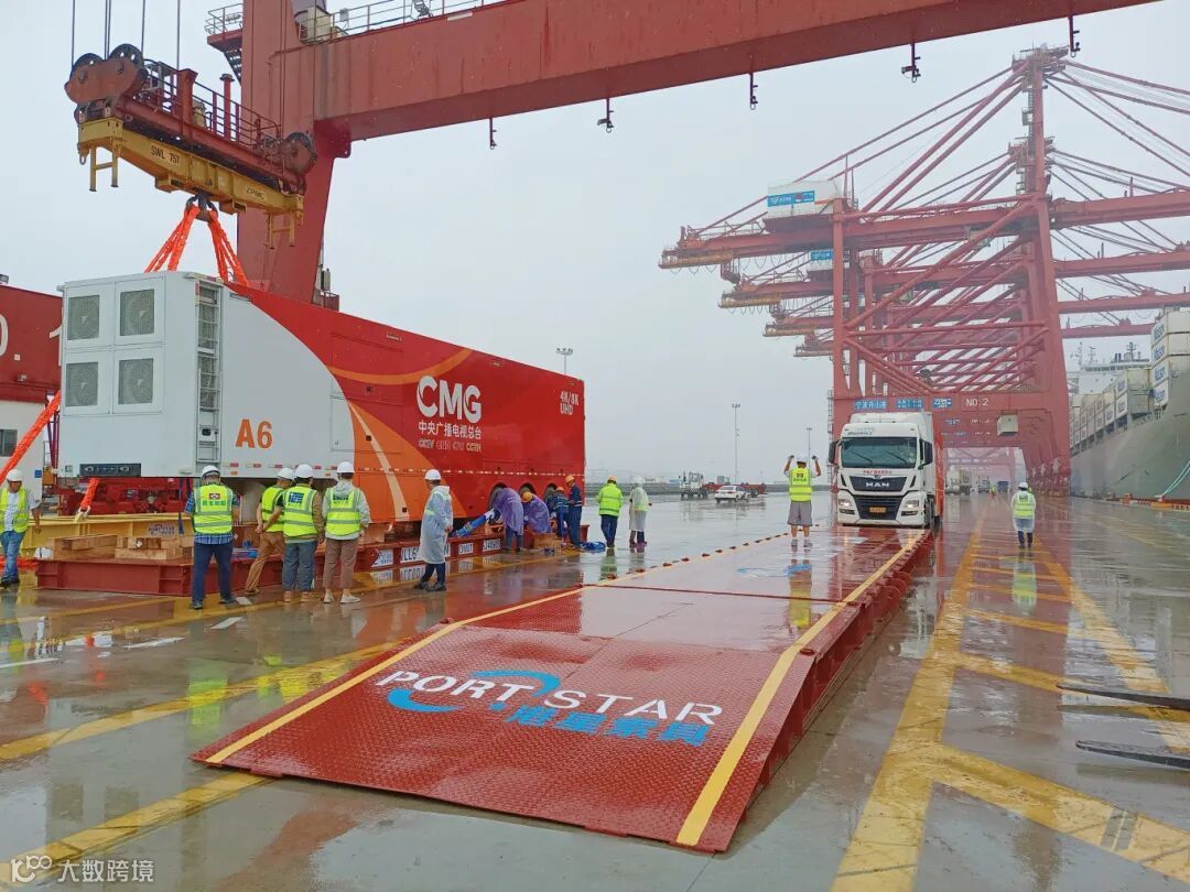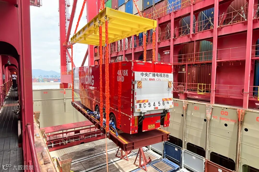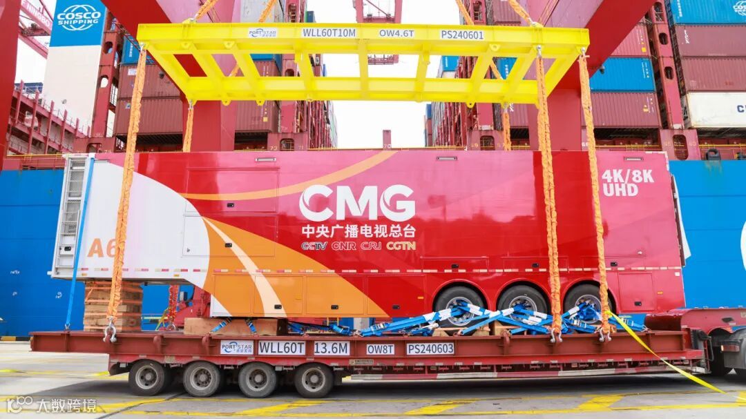 宁波舟山港梅山港区此前已为中央广播电视总台发运10标准箱1256件巴黎奥运会转播报道设备至法国勒阿弗尔港。此次发运的中央广播电视总台4K/8K超高清转播车长17米,宽2.5米,最多可以容纳34个工位和5个工作区,同时处理60路信号源。该车曾因转播东京奥运会出现在东京街头,被网友亲切地称为“中国红”并火爆网络。