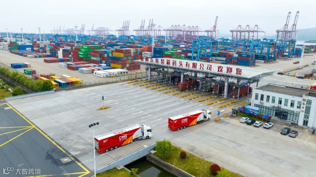 图为5月24日,2辆转播车驶入宁波舟山港梅山港区。