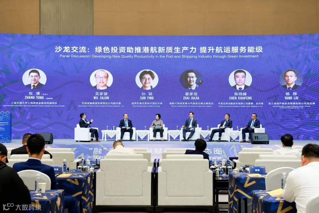 沙龙交流环节,在上海交通大学上海高级金融学院副院长张湧主持下,交银金融租赁有限责任公司副总裁吴家骏,波罗的海交易所中国区代表孙颖,德勤中国可持续发展与气候变化事业群总监翟家佳,宁波远洋运输股份有限公司董事、总经理陈晓峰,浙江海港产融投资管理有限公司总经理杨柳围绕“绿色投资助推港航新质生产力 提升航运服务能级”主题展开对话,就如何利用港航新质生产力助力实现“双碳”目标,港航企业如何平衡短期减排目标与长期可持续发展,如何更好地将技术创新与航运金融服务相结合等问题进行了热烈的探讨,为金融助力港航绿色化发展带去更多的思考和探索。
