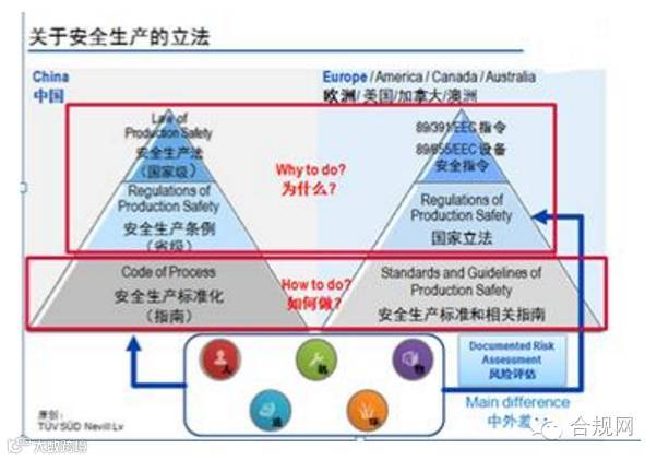 与之不同的是,多少受了计划经济时代的影响,我们国家的工厂生产管理均是以符合标准的思路来执行的,内部管理,外部监督都如此。很多企业以符合标准而自认为是安全的标志, 似乎一个概念被混淆了, 安全管理, 我们在管理措施还是管理风险?风险是需求, 措施是行为,需求确认普遍被企业慵懒地撒手了, 企业内只管措施, 如何来理解,企业的责任主体难于最好体现。