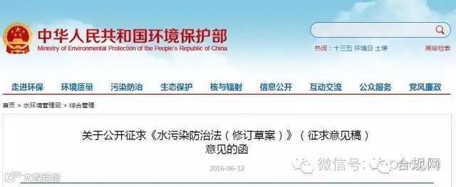 关于公开征求《水污染防治法(修订草案)》