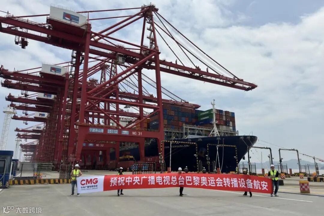 5月7日凌晨4时许,10个装有转播设备的中远海运集装箱,搭乘着400米集装箱船“达飞凯尔盖朗”轮缓缓驶离宁波舟山港梅山港区6号泊位,出发前往法国,意味着中央广播电视总台巴黎奥运会转播设备及其他相关海运物资正式进入国际运输阶段。