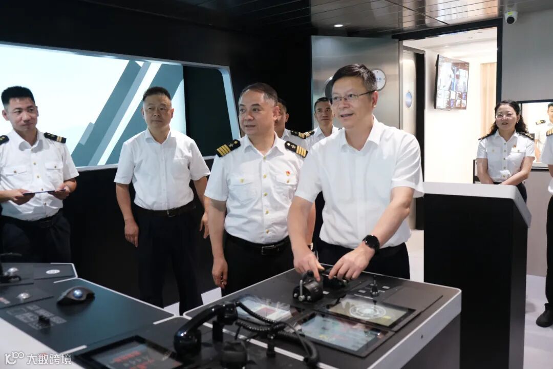 揭牌后,江涛一行在智能引航实验室模拟器驾驶舱内观看了引航应急处置模拟演练,并操作体验了驾驶台设施设备。他表示,大港引航智能引航实验室的成立,有利于发挥引航的科研、创新、技术优势,对强化引航资源利用、技能培养、港口协同配合与安全保障具有重要意义。希望大港引航进一步深化智能引航实验室应用场景,提升引航科研实力,产出更多科研成果;加强队伍建设,练就过硬引航技能,培育引航科研人才梯队;加强协同配合,提升应急能力,助推港口新质生产力发展。