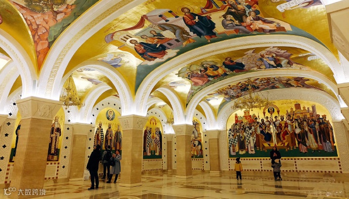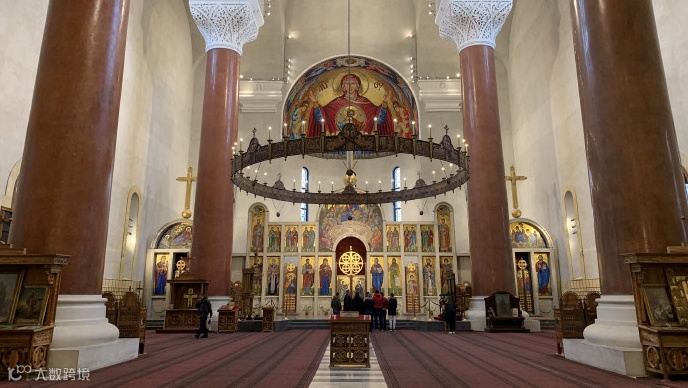 初见教堂时,人们总是会惊叹洁白如玉的大理石和花岗岩筑成的外墙,松绿石色半圆形吊顶以及高达12米的镀金十字架。