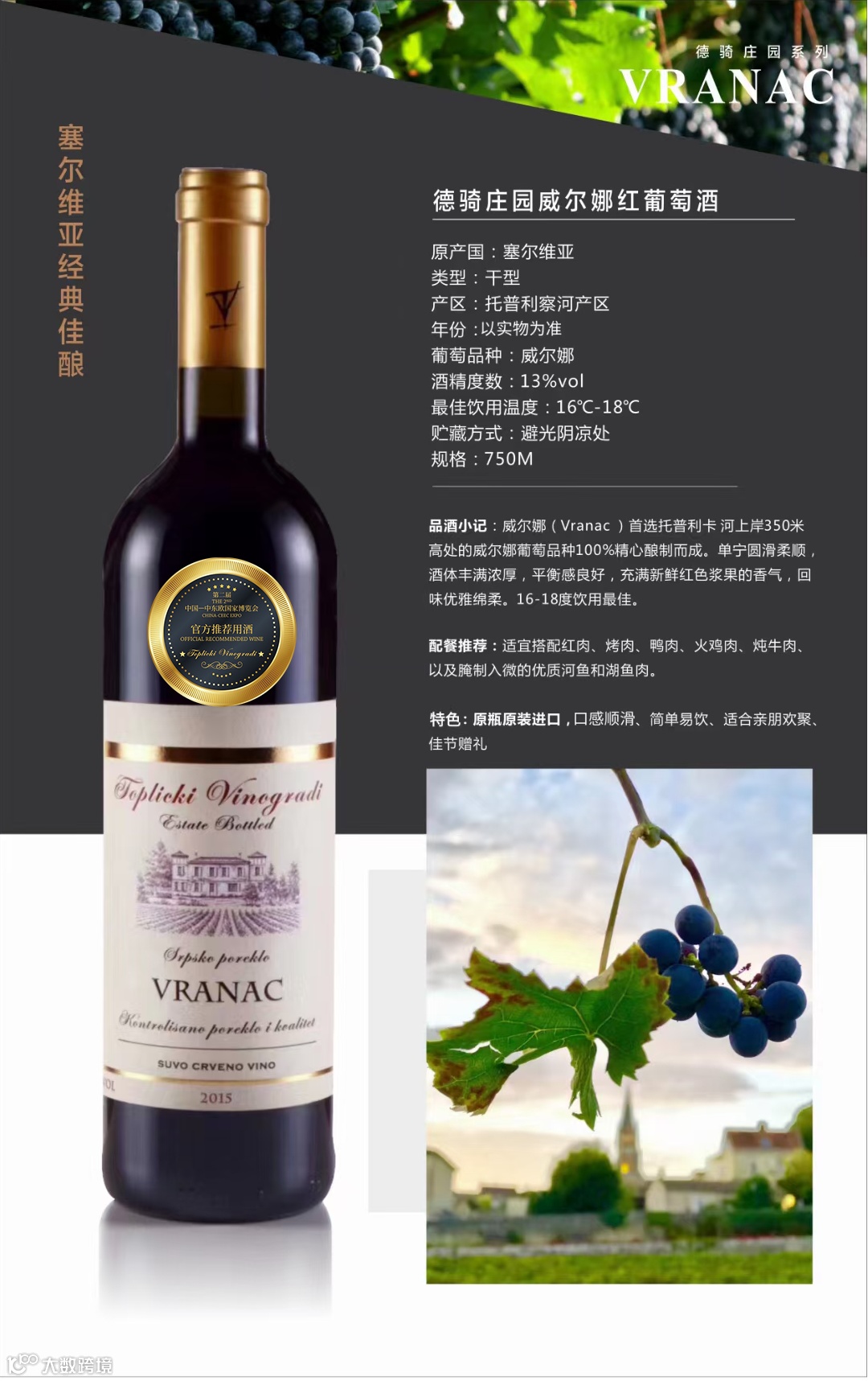 点击上方链接即可获得塞尔维亚德骑庄园威尔娜红葡萄酒的官方购买渠道哟~