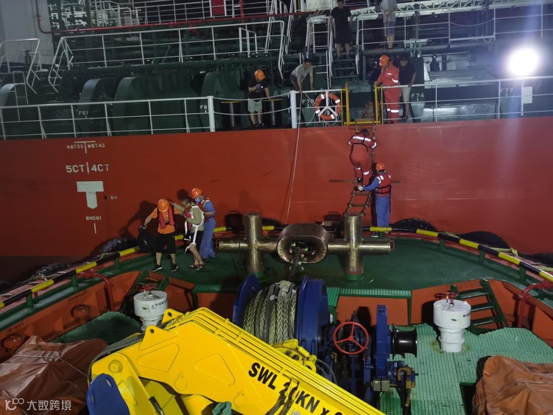 凌晨1时,“台海救01”轮到达目标船舶所在锚地。“我们已穿好救生衣,随时可以下船。”为保证生病船员下船过程安全,“台海救01”轮当班驾驶选择从货轮右舷下风处贴靠。在拖轮船员及货轮船员的默契配合下,仅用时7分钟,生病船员被安全转移至拖轮船舱休息室。