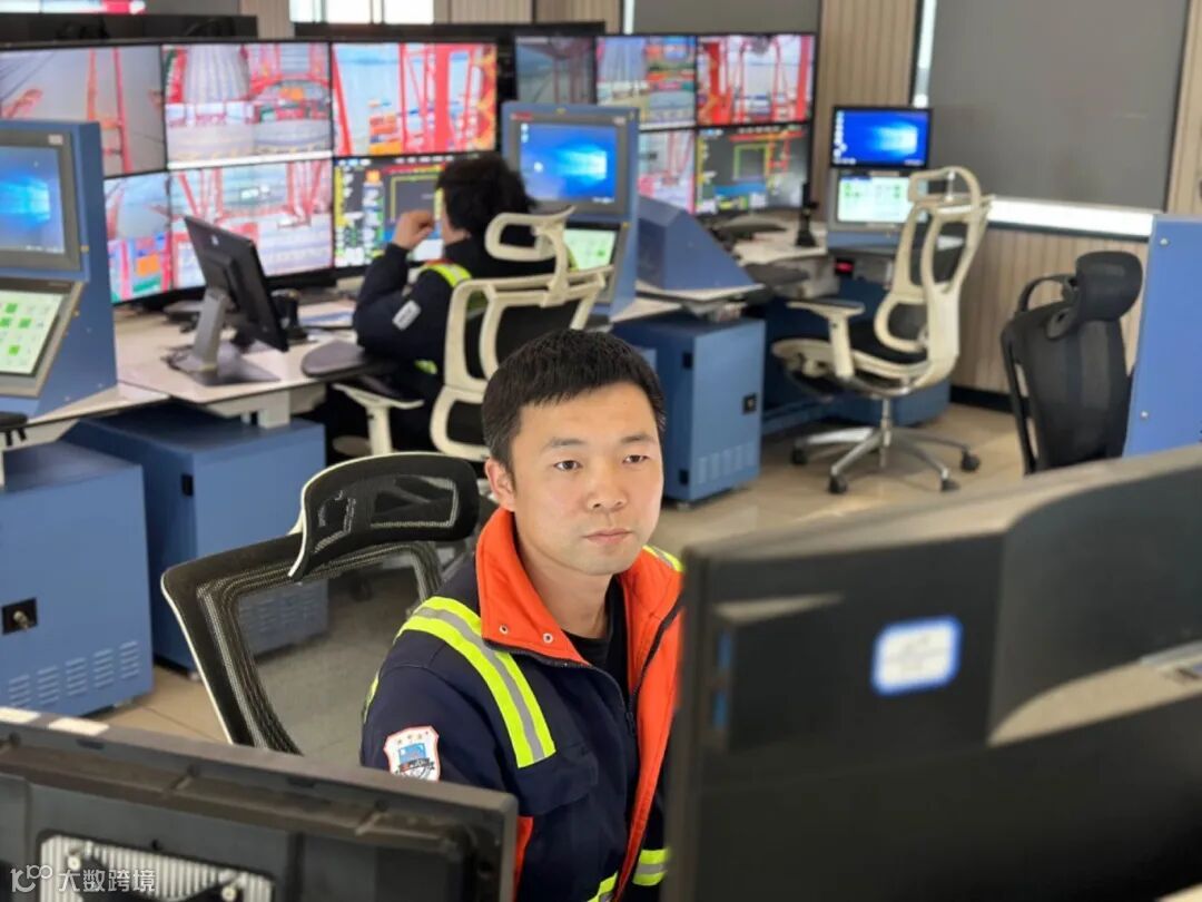 数字化、智慧化的浪潮带来了设备的更新,也改变了港口传统司机的作业方式。随着远控桥吊落户梅山港区,吴起飞也转型成为一名远控司机,从近50米的高空中回到地面的远控操作室。