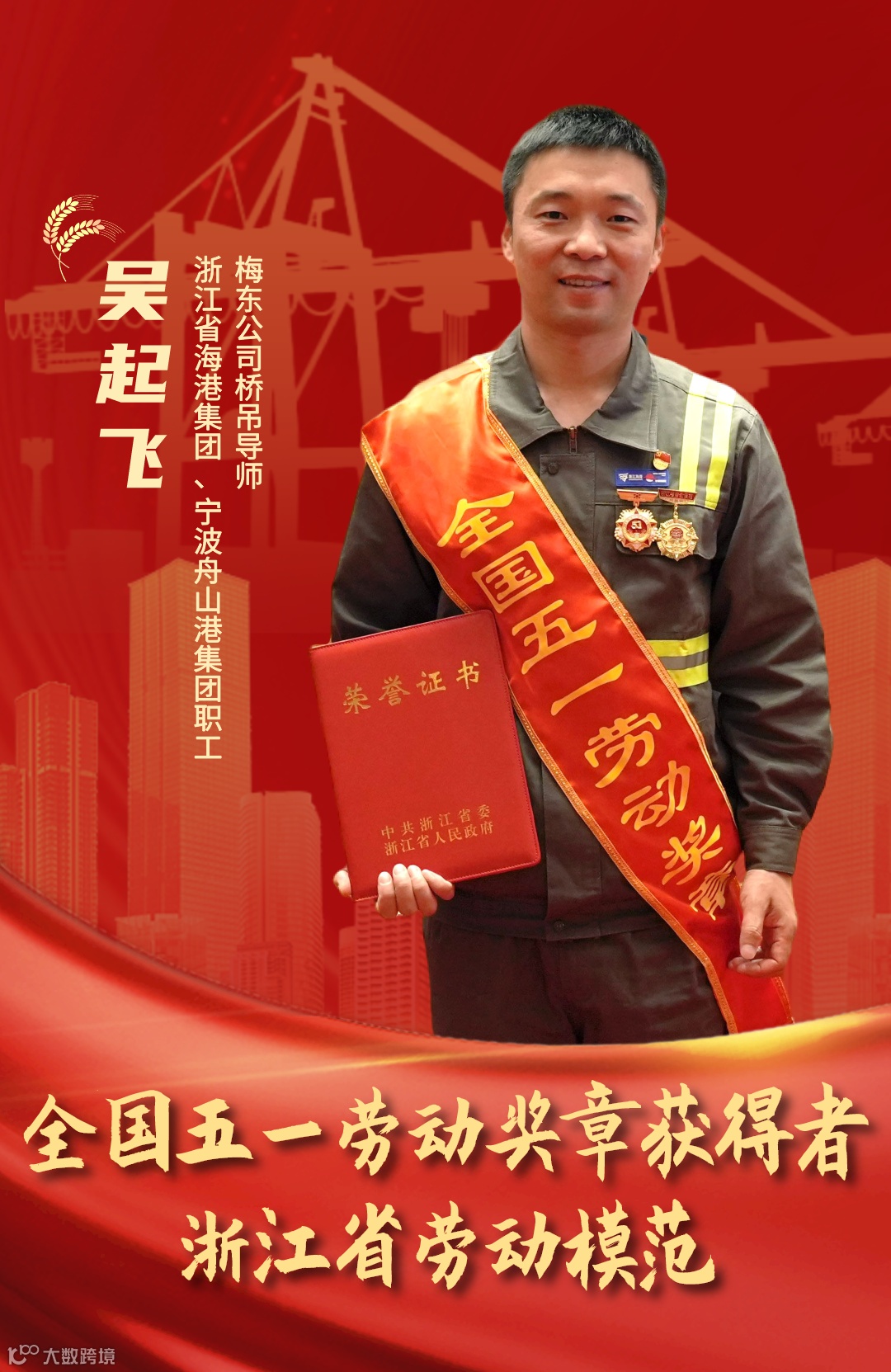 他是全国级技术能手,在52米高空演绎绝活“穿针线”;他是大港桥吊导师,在3公里外教学远程“抓娃娃”;他是王牌战队队长,在千万箱级码头助力“建强港”……他就是吴起飞,宁波舟山港梅山港区集装箱码头90后桥吊司机,曾荣获全国交通技术能手、全国青年岗位能手、浙江省国资国企系统“优秀共产党员”、浙江工匠等荣誉称号。就在五一前夕,他又荣获“全国五一劳动奖章”“浙江省劳动模范”两项荣誉。