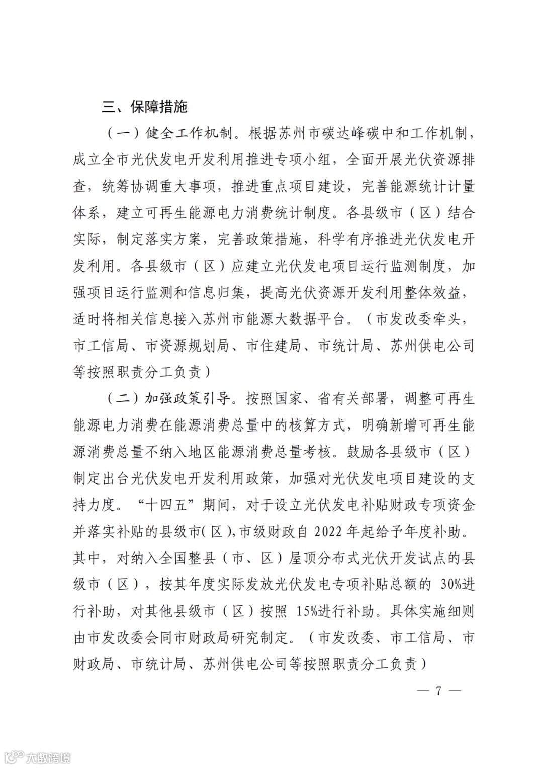 “十四五”期间,对设立光伏发电补贴财政专项资金落实补贴的县级市(区),市级财政自2022年起给予年度补助,其中,对纳入全国整县(市、区)屋顶分布式光伏开发试点的县级市(区)按其年度实际发放光伏发电专项补贴总额的30%进行补助,对其他县级市(区)按照15%进行补助。
