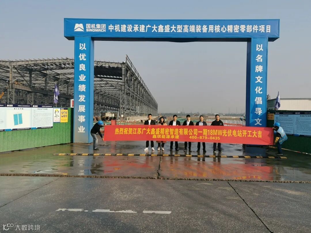 2021年10月30日,伴随着隆隆礼炮声,鑫琪能源与江苏广大鑫盛精密制造有限公司合作开发的18MW分布式光伏发电项目开工仪式在广大施工现场如期举行,标志着该光伏项目工程建设正式展开。