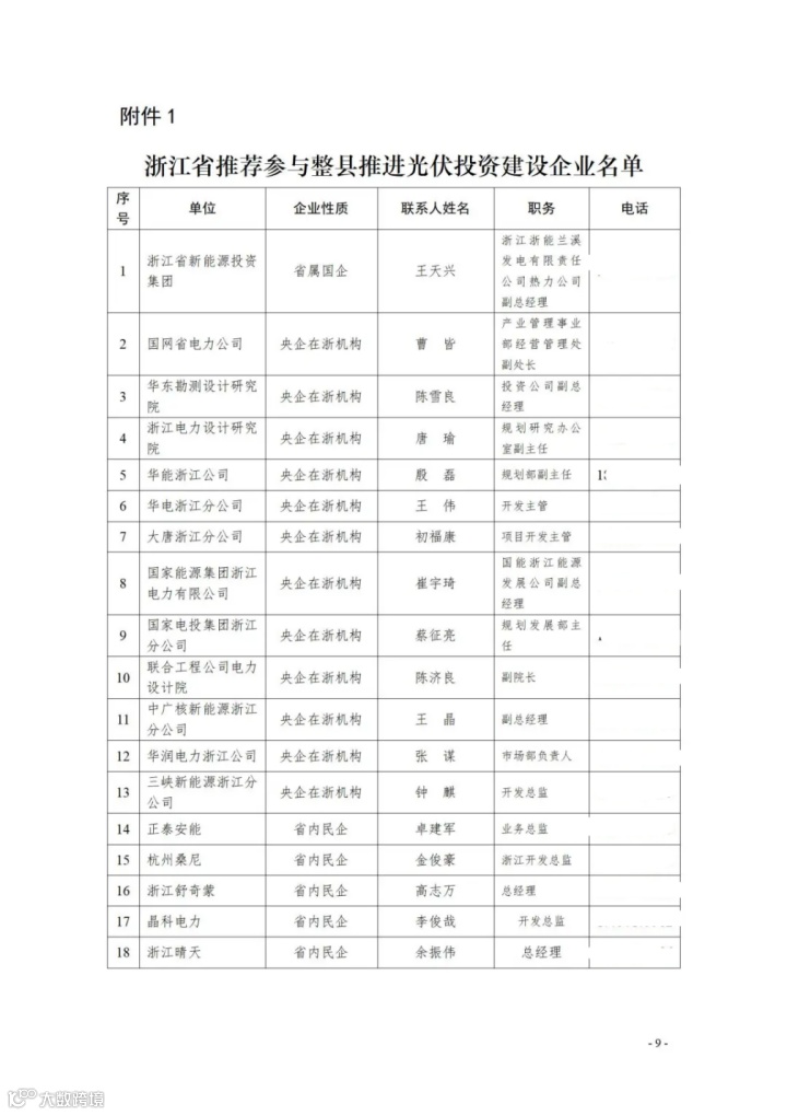 近日,在浙江省某县流露出的一份整县推进光伏开发试点工作方案的征求意见稿中,浙江省推荐了18家央、国、民企参与整县推进光伏投资建设。