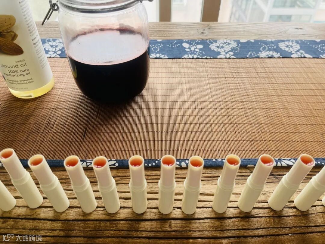 我们只需要静等唇油凝固后,盖上盖子贴上纯手工润唇膏标签,“纯天然”的自制润唇膏就完成啦。