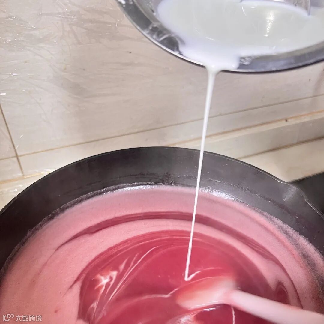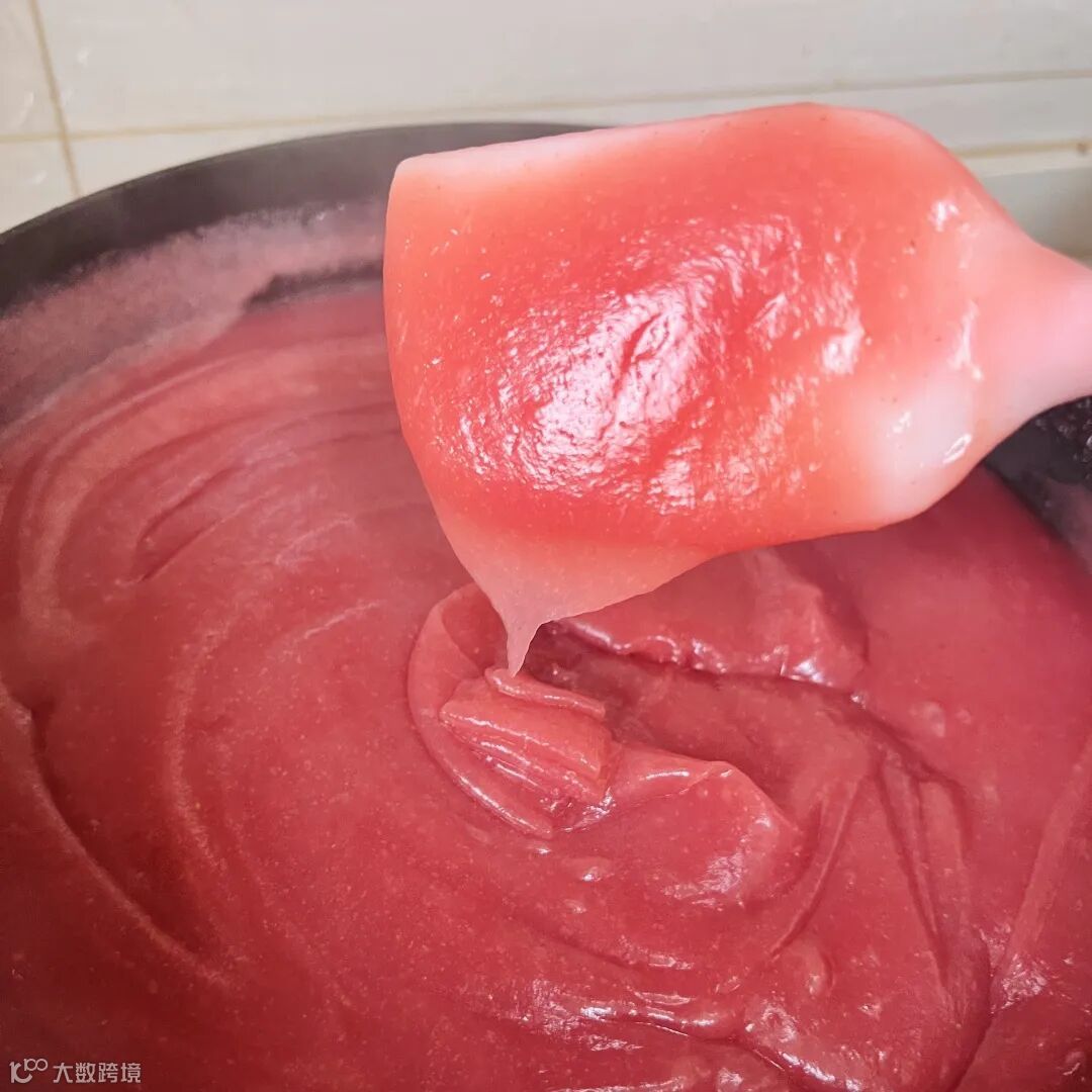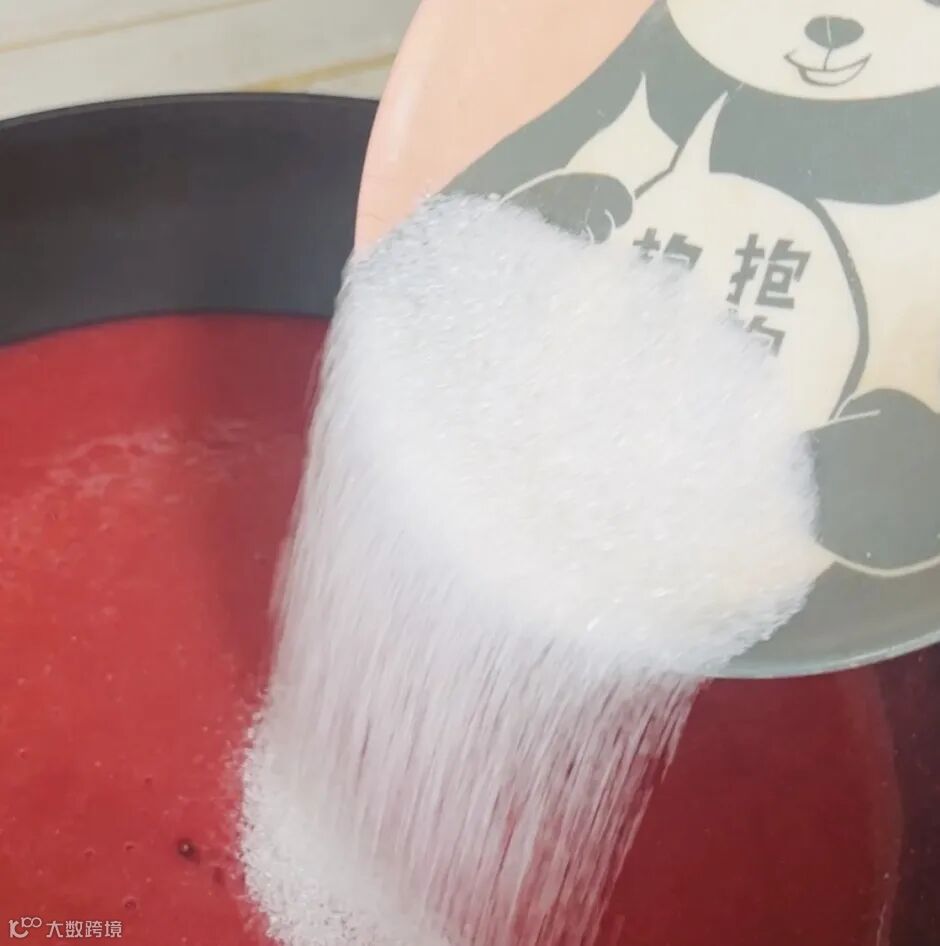 重新开火加热,继续搅拌,直到“草莓糖浆”呈现透明糊状。