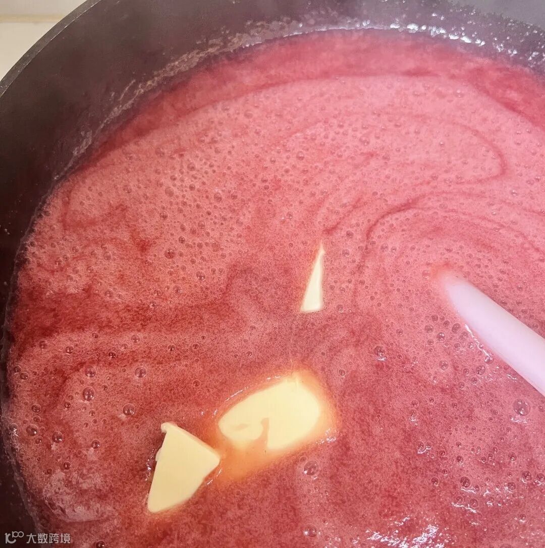 开大火煮沸后立即关火,加入黄油并搅拌融化。