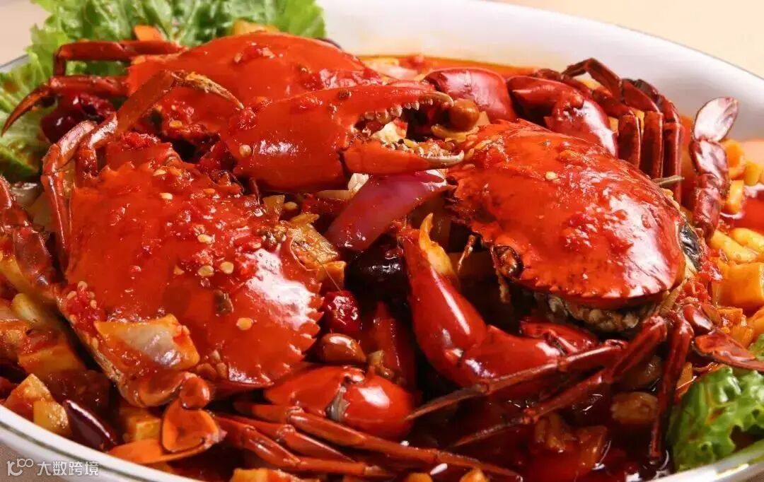 香辣蟹香味浓烈,甜辣适口,蟹肉含蓄的鲜味与调味料的香辣相得益彰。