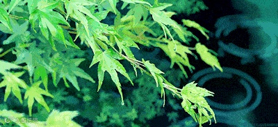 由于白天日照仍很强烈,夜晚凉风刮来形成一定的昼夜温差,空气中的水蒸气清晨时在室外植物上凝结成一颗颗晶莹的露珠。